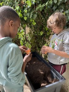 Avec l’accompagnement de Sens Solidaires, les élèves et les éco-délégues ont participé à la plantation de fraisiers, de tomates cerises, de poivrons, de radis, de capucines, de basilic et des plantes aromatiques en avril. Ce projet soutient les objectifs du développement durable, en favorisant l’accès à la santé, le bien-être et la production et consommation responsable. Cette initiative sensibilise les élèves aux enjeux environnementaux et encourage une action en faveur de la biodiversité et du développement durable.