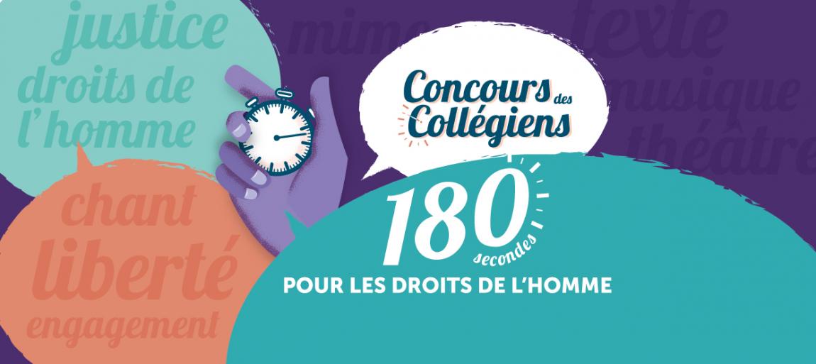 Le concours « 180 Secondes pour les droits de l’homme » propose aux élèves de collège de dénoncer une atteinte aux droits de l’homme à travers le mode d’expression de leur choix. Ce concours est ouvert aux collégiens de 4ème et 3ème.
