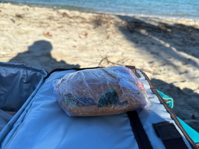 Nous avons déjeuné sur la plage de la Garoupe , quel régal ces pans bagnats 🙂