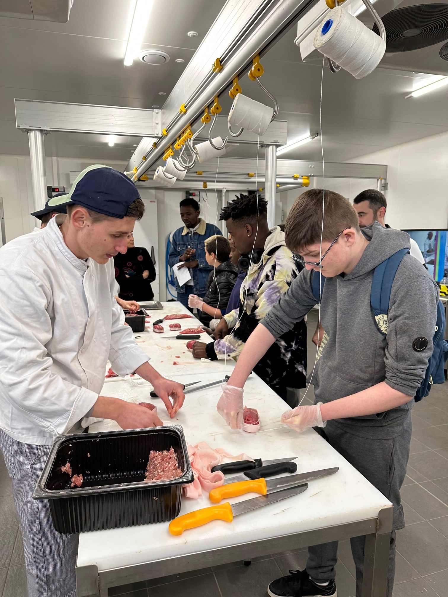 Par la suite, les élèves du dispositif Ulis ont pu s’exercer au métier de boucher avec l’atelier réalisation de paupiettes.
