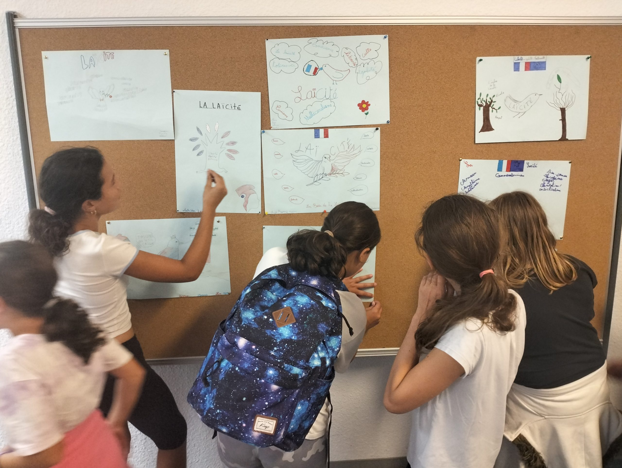 Les élèves de 6èmeA, 6èmeC, 6ème F ont réalisé un travail de recherches et de créations artistiques sur la notion de laïcité dans le cadre du cours d’EMC avec leur professeure d’histoire-Géographie Madame Ruf et la professeure documentaliste Madame Cendo.