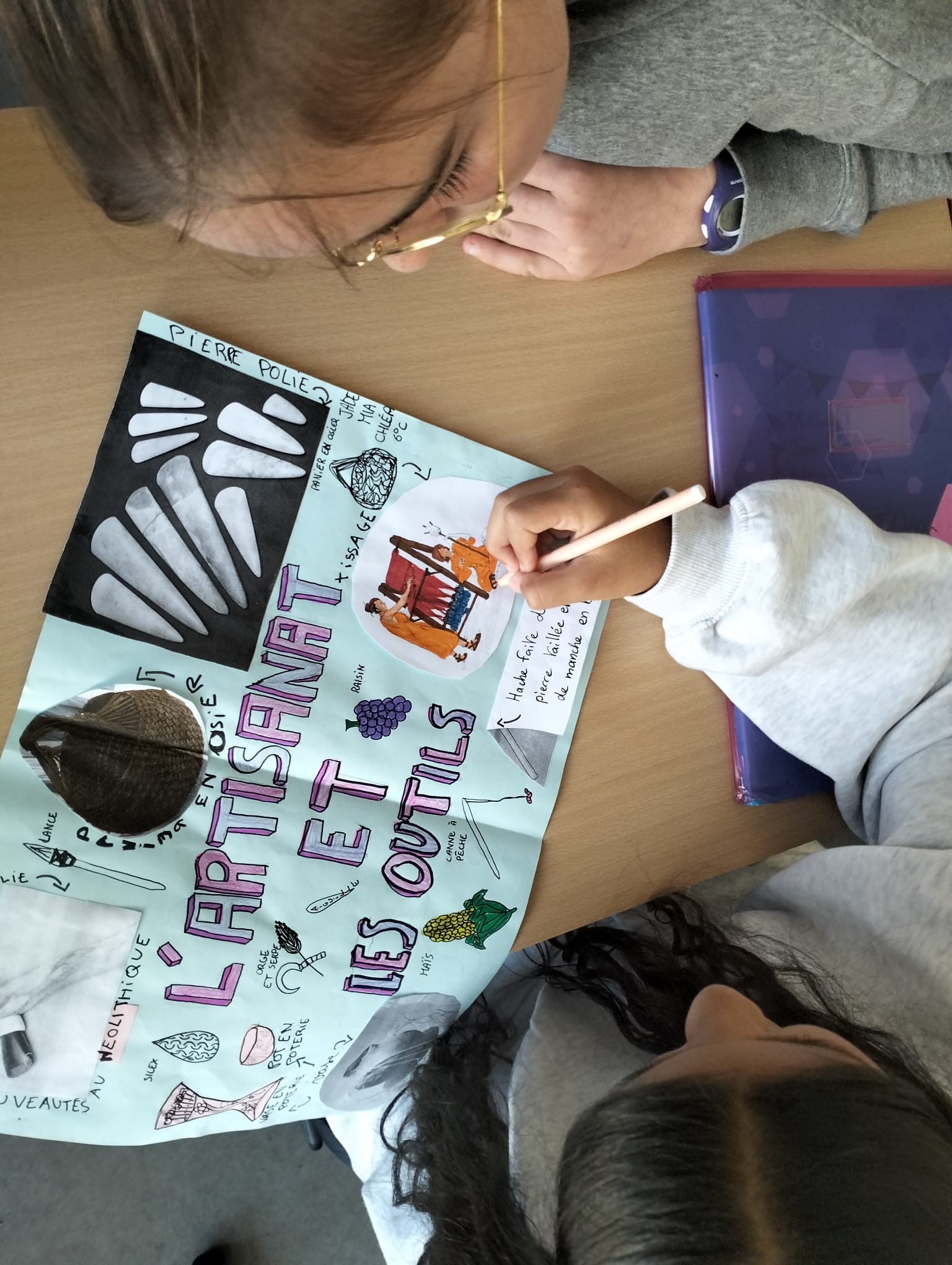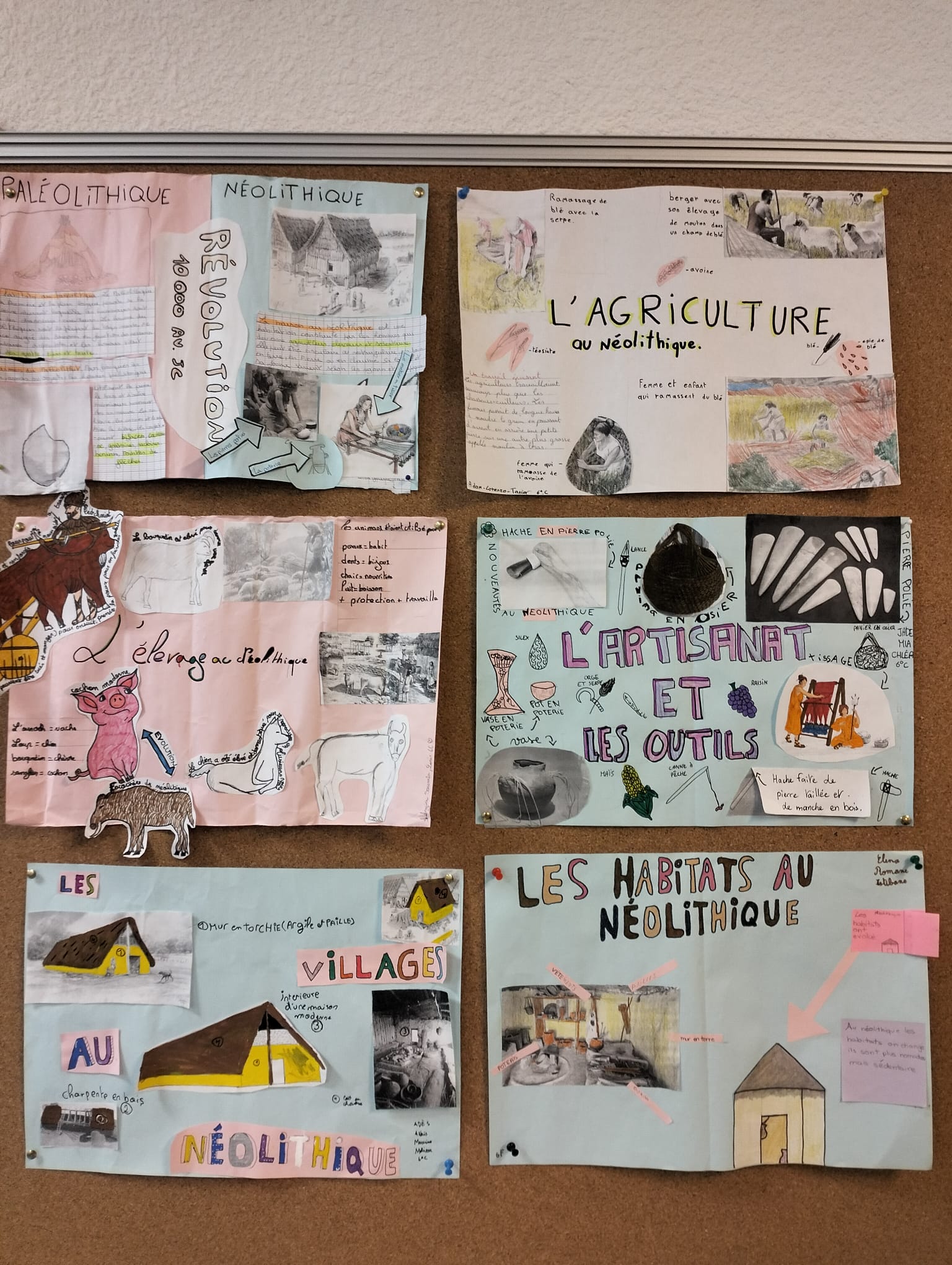 » Les classes de 6eme A, C et F ont travaillé avec leur professeur d’histoire, Me Ruf, sur la »Révolution Néolithique ». Ce chapitre s’est déroulé en plusieurs temps: en classe, puis au CDI avec l’aide de Me Cendo. Ensuite les élèves ont présenté leurs affiches et le bilan de leurs découvertes au reste de la classe, chaque groupe ayant travaillé sur des sujets différents.