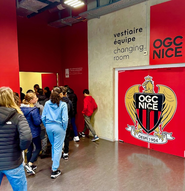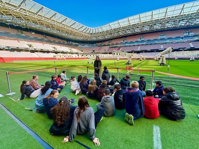 La visite s’est poursuivie par une exploration des vestiaires des sportifs et du célèbre stade imaginé par l’ architecte Français Jean Michel Wilmotte qui a ouvert ses portes en 2013. De nombreux matchs de football , de rugby et de très beaux concerts ont déjà eu lieu dans ce magnifique stade en forme de nid d’aigle.