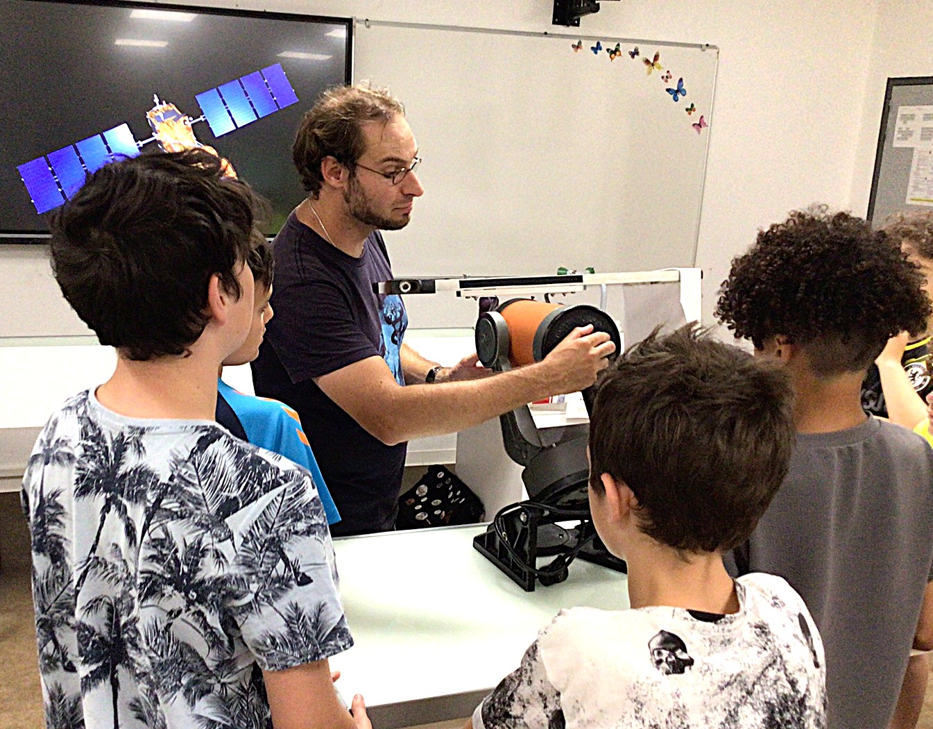 « Ce mercredi 18 juin 2025 a eu lieu le lancement du projet Astrophotographie organisé par Mmes BEN LARBI et SCHEREDINE ainsi que M. JOANNIDES. 16 élèves de 5ème et de 4ème ont assisté à une séance animée par M. AMAURY, membre de l’association PARSEC de l’Astrorama de La Trinité. Histoire des observations du ciel et observations du Soleil étaient au programme : de l’origine des noms des planètes au télescope Hubble en passant par la fameuse lunette de Galilée, nos élèves ont écouté avec grande attention les récits passionnés de M. AMAURY, ont appris beaucoup sur les instruments d’observation du ciel et ont maintenant hâte de photographier des étoiles, des nébuleuses et des planètes. Vivement les observations nocturnes prévues l’hiver prochain ! »