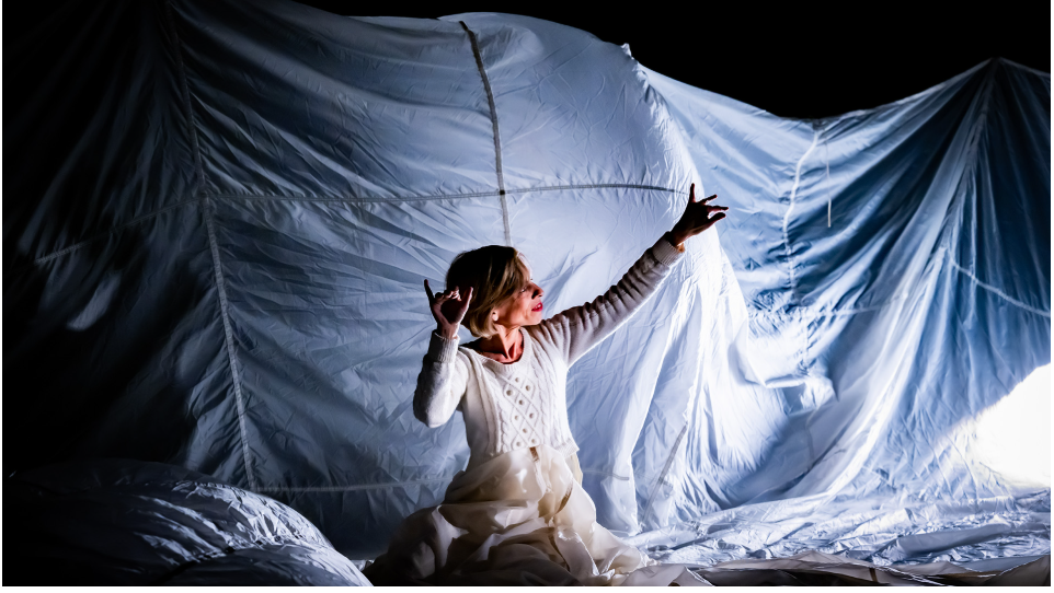Elle réapprend par étapes à se mouvoir légèrement et la tête haute en convoquant : sa pensée poétique, sa compréhension du corps, la perception de toutes les défenses animales qu’il contient (bec, coudes, ongles et genoux), la joie de danser, la bulle qui l’entoure, ou dit autrement, son intuition. Tous ces éléments vitaux vont lui permettre de se défendre, de se protéger en apprenant à ressentir les autres (s’ils sont oui ou non), et lui donneront le courage de prendre la parole. »