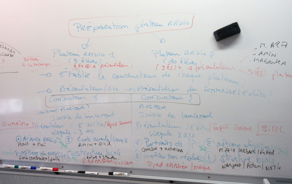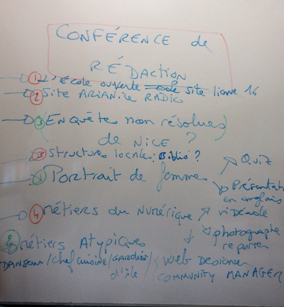 Après la visite du 109, nos web reporters dressent un bilan de leur matinée de reportage et préparent leur plateau radio en menant leur conférence de rédaction.