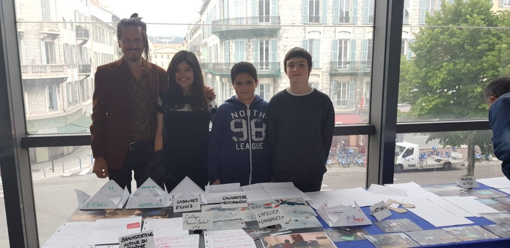 Samedi 18 mai 2019 à 15h au M.A.M.A.C, nous avons préparé la projection et l’emplacement de chaque objet qui a servi au projet. Ce dernier s’intitule «La classe, L’œuvre» et exposé pendant la nuit des musées. Chaque visiteur qui passait devant notre stand a été alpagué par notre brillant Nathan et ensuite passé dans l’Auditorium pour visionner avec admiration notre film, écouter ensuite l’explication du choix de l’organisation du thème présenté par notre duo de choc: Amine et Nathan.