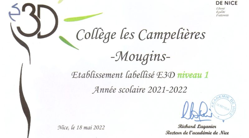 Read MoreLABELLISATION E3D DU COLLÈGE LES CAMPELIERES NIVEAU I DEPUIS LE 18 MAI 2022 OBJECTIF : SENSIBILISATION AU CADRE DE VIE