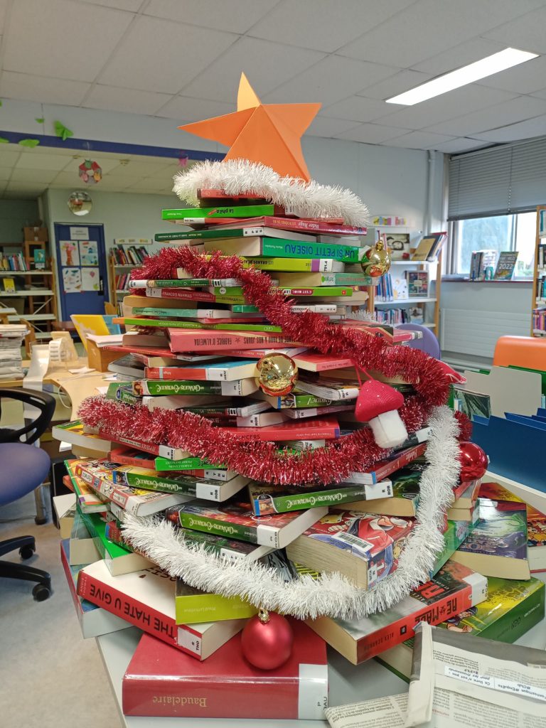 Plusieurs élèves de 4e ont érigé un sapin « littéraire ».