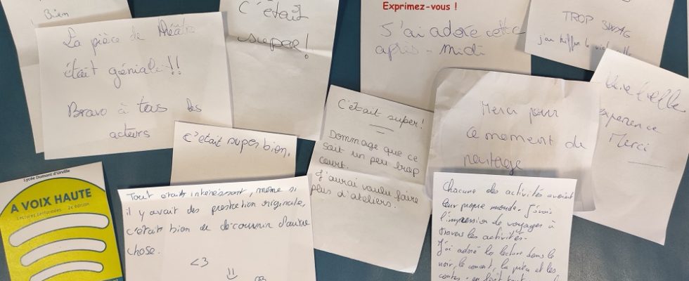 En témoignent les messages laissés par les spectateurs de l’événement « À voix haute » a plu aux élèves. L’un d’eux a par exemple écrit : « Chacune des activités avait son propre monde. J’avais l’impression de voyager à travers les activités. J’ai adoré la lecture dans le noir, le concert, la pièce et les contes ; en fait tout m’a plu durant cet évènement. Et j’aimerais tellement pouvoir y assister l’année prochaine ! ». Donc vivement la prochaine édition !