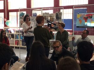 Cet échange a été doublement filmé dans le cadre du projet de film documentaire réalisé par Cathy Chamorey sur les parcours de réussite des élèves allophones et par France 3 qui nous a fait l’honneur d’assister intégralement à cette rencontre et a interviewé journaliste et élèves.