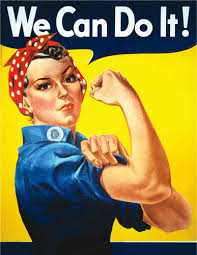 Rosie la riveteuse est une femme pleine d’assurance de la seconde guerre mondiale. Une campagne de presse fut lancée pour convaincre la population que les femmes pouvaient riveter (c’est à dire fixer au moyen de rivets) et participer à l’effort de guerre en 1942. C’est J. Howard Miller qui créa l’affiche de Rosie.