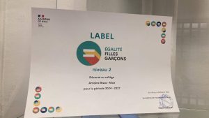 Le vendredi 7 mars 2025, le collège Risso à Nice a été labellisé « égalité filles-garçons » niveau 2 grâce aux nombreux projets réalisés par les référentes égalité filles-garçons : Mmes Bartolini, professeure d’espagnol, et Guemri, professeure de français. Pour décerner ce prix, la rectrice de l’académie de Nice, Natacha Chicot, nous a fait l’honneur de sa présence.