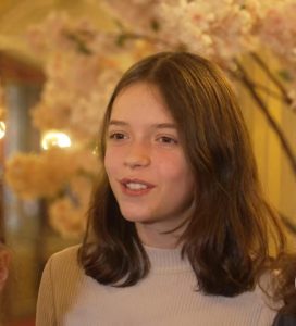 Vabre Marion: Mon nom est Vabre, mon prénom est Marion. Ca va faire 6 ans que je performe dans le chœur d’enfants de l’opéra de Nice.