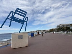 La célèbre chaise bleue de la Promenade, ici en sculpture