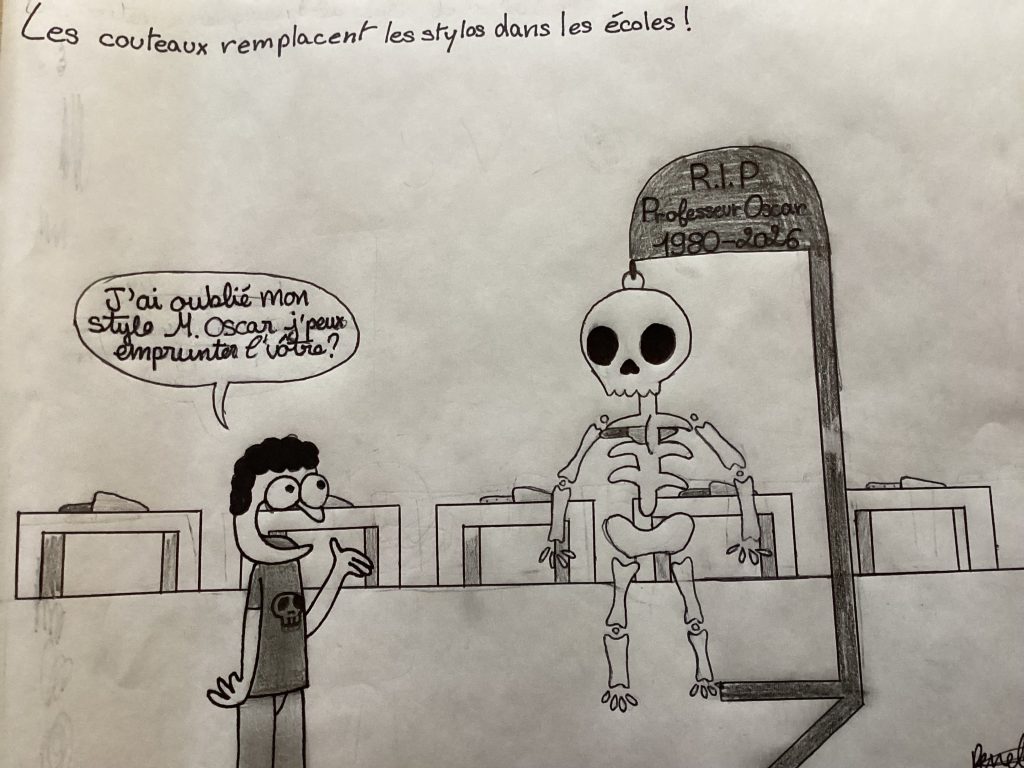 dessin de presseEducation Les couteaux remplacent les stylos dans les écoles ! 26 mars 2026 risso dessin de presse