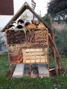 Nous avons décidé de créer un hôtel à insectes. Cet hôtel permet la survie hivernale d’insectes et d’arachnides; espèces indispensables dans des écosystèmes où la pollinisation et la biodiversité sont recherchées. Il pourrait avoir un intérêt majeur sur notre vie et la biodiversité en ville. On ne verra pas directement son impact sur nos vies mais cet hôtel pourrait contribuer au maintien des services écosystémiques liés aux insectes (comme la pollinisation, l’équilibre des réseaux alimentaires, lutte contre des insectes dits nuisibles …)