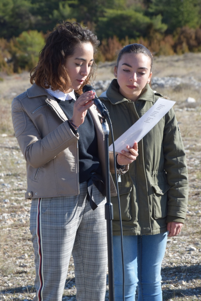 Deux de nos élèves se sont partagées la lecture de la « complainte du partisan » écrite par Emmanuel d’Astier de la Vigerie en 1943. Nous avons eu l’honneur de rencontrer un ancien résistant, qui a adressé aux élèves un message d’espoir et de transmission de nos valeurs républicaines.