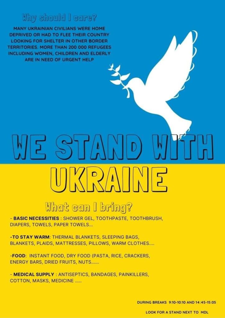 A l’initiative de plusieurs élèves lycéennes, un collecte est organisée en collaboration avec l’Association Franco-Ukrainienne en PACA. Vos dons de vivres et de biens peuvent être déposés au stand qui se tient près de la MDL jusqu’à mercredi prochain 9 mars.
