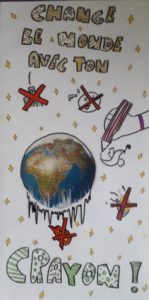 A partir de là, les élèves ont mené leur travail de questionnement et de création pour proposer des réalisations variées. Ils ont utilisé des techniques adaptées en fonction du message qu’ils voulaient faire passer : collage, peinture, dessin, écriture… Tous les niveaux ont planché pour vous proposer leurs projets dans cette mise en scène prévue au départ du travail. Au total quelques 108 projets qui ont permis à chacun de faire vivre la liberté d’expression.