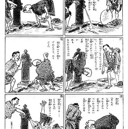 C’est Kitazawa qui reprend le terme de mangas pour désigner ses dessins, il se désigne lui-même comme mangaka (dessinateur de mangas).