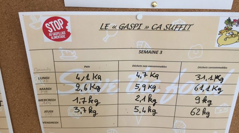 Ainsi, sur trois semaines espacées, un comptage a été effectué et affiché à la cantine. Cette action a permis de voir la quantité d’aliments jetés, d’alerter les élèves et l’ensemble de l’établissement sur ce sujet.