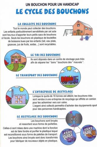 Ces bouchons sont ensuite revendus par l’association. Le plastique est broyé puis fondu. Cela forme des granules qui servent à fabriquer de nouveaux objets. L’argent récolté par l’association « Bouchons d’amour 06 » permet d’acheter du matériel pour les personnes handicapées dans notre département.