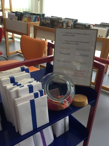 Laissez-vous tenter par un livre surprise ! Il s’agit de piocher dans la boîte à livre et la couleur du papier vous indique le genre : historique, aventure, policier, science-fiction ou bien encore fantastique. Vous pourrez ensuite défaire le paquet et découvrir le roman.