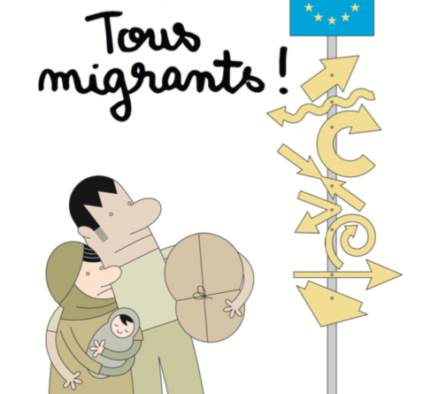 Le CDI accueille en salle vidéo l’exposition « Tous migrants ! » réalisée par l’association Cartooning for Peace. Cartooning for Peace est un réseau international de dessinateurs de presse engagés qui combattent, avec humour, pour le respect des cultures et des libertés.