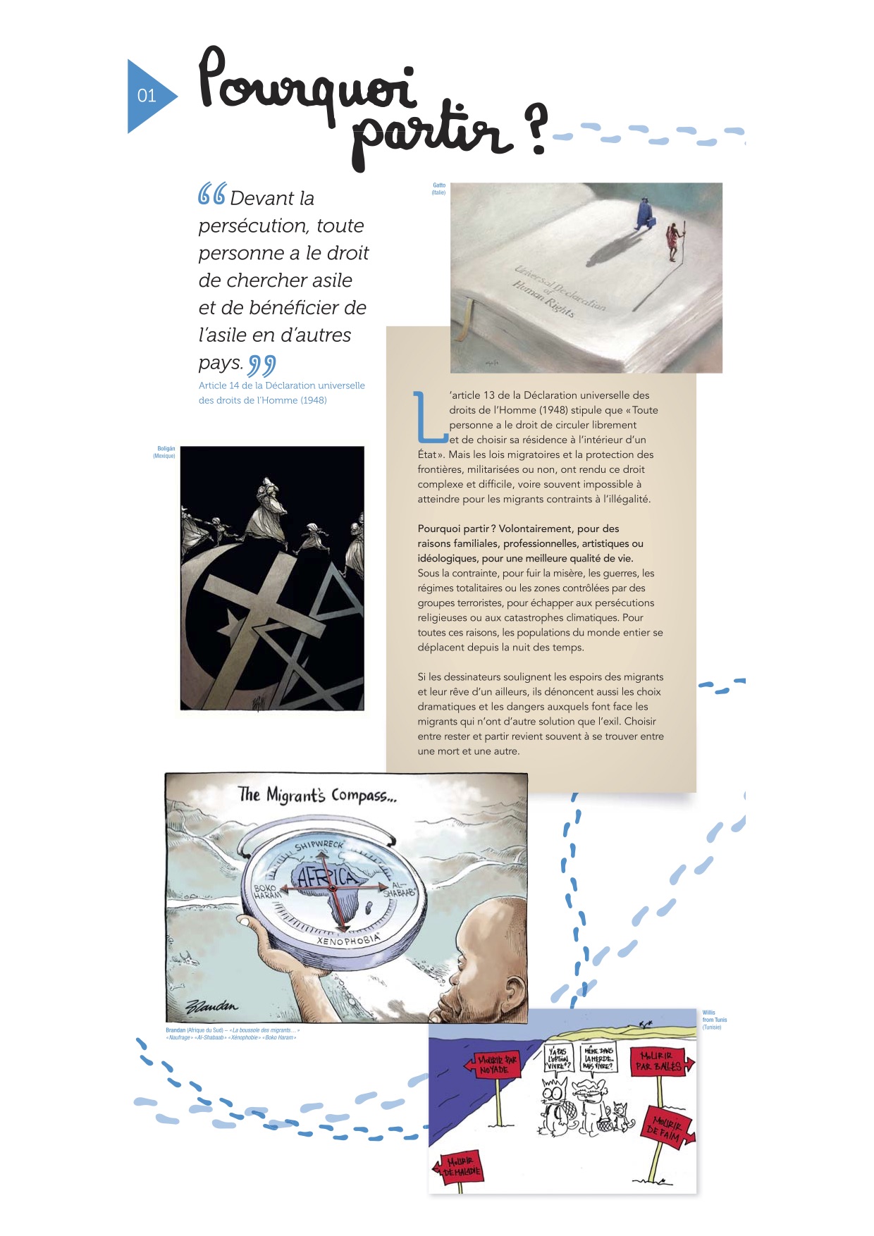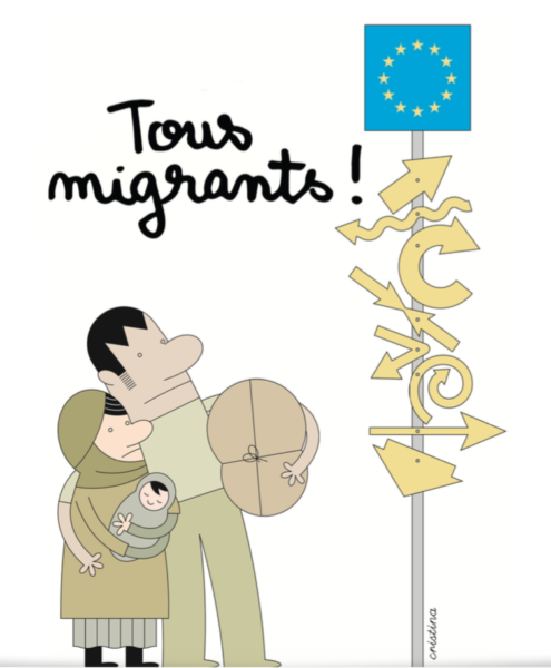 Le CDI accueille en salle vidéo l’exposition « Tous migrants ! » réalisée par l’association Cartooning for Peace. Cartooning for Peace est un réseau international de dessinateurs de presse engagés qui combattent, avec humour, pour le respect des cultures et des libertés.