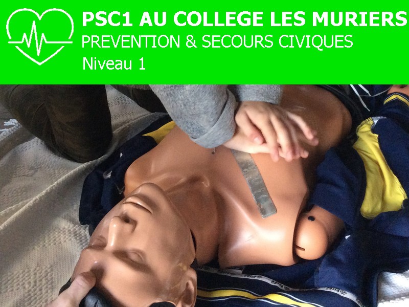 La Formation PSC1 permet à toute personne d’acquérir les compétences nécessaires à l’exécution d’une action citoyenne d’assistance à personne en réalisant les gestes élémentaires de secours. Le collège les Mûriers propose à tous les élèves volontaires de 3° de participer à cette formation pendant l’année scolaire, sur leur temps libre, les mercredis après-midi et pendant les vacances. Au premier trimestre 20 élèves ont déjà été formés et d’autres formations sont déjà prévues à partir de janvier. 4 professeurs-formateurs du collège sont mobilisés. Il est encore possible de s’inscrire auprès d’eux pour être formés.