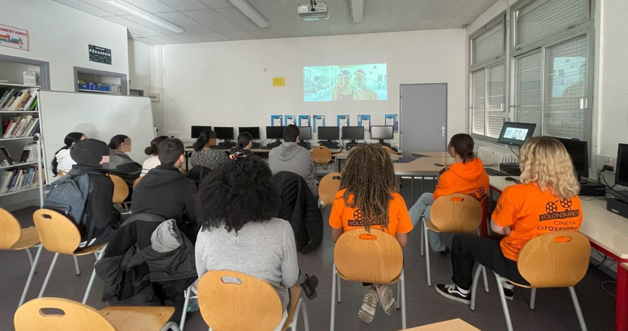 Les volontaires de l’association Unis-cité sont revenus cette année pour présenter le court métrage « Les baleines ne savent pas nager » sur le thème de la discrimination et de l’égalité filles-garçons.
