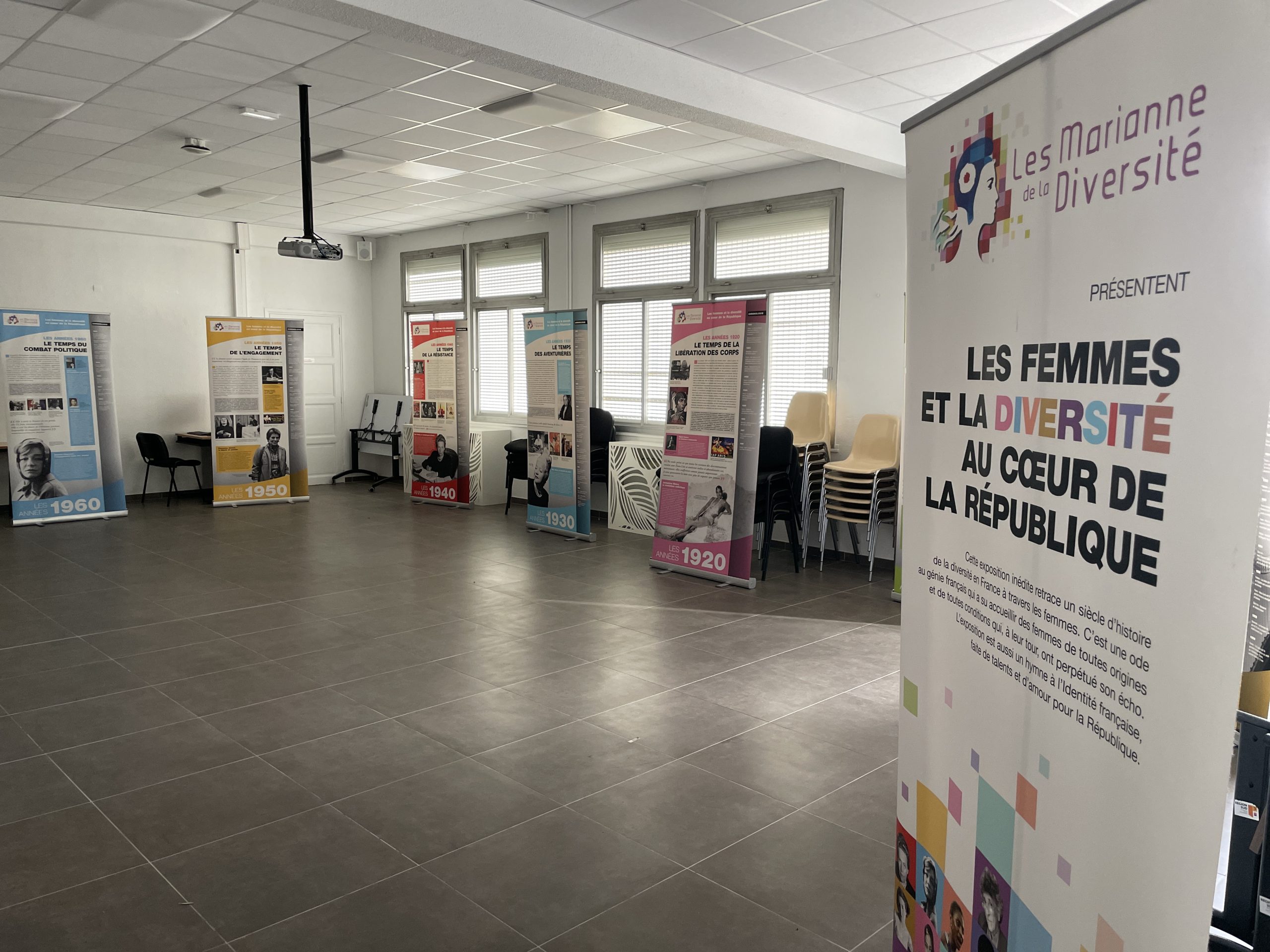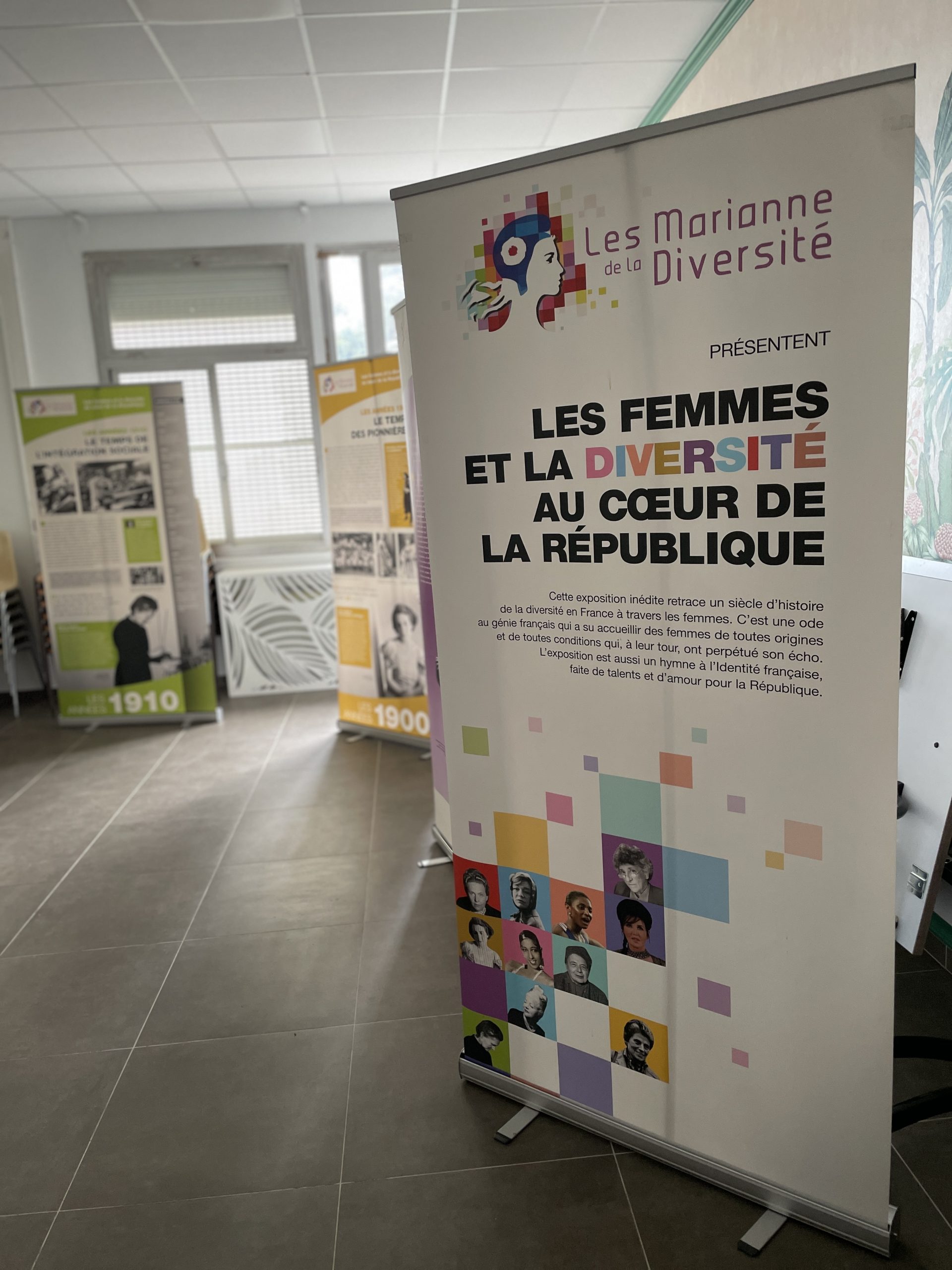 Nous avons l’honneur d’accueillir l’exposition  » Les Femmes et la Diversité au coeur de la République  » du lundi 17 novembre jusqu’au vendredi 28 novembre présentée par l’association « Les Mariannes de la Diversité ». Elle retrace un siècle d’Histoire de la diversité en France à travers les femmes. Toutes les classes de l’établissement sont invitées à la découvrir et à remplir sur les fiches « portraits » et la frise chronologique.