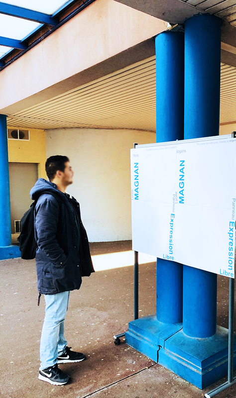 Pour trouver les idées, des panneaux d’expression libre sont à côté de la vie scolaire. Vous pouvez écrire ce que vous pensez du lycée : en un mot ou un slogan.