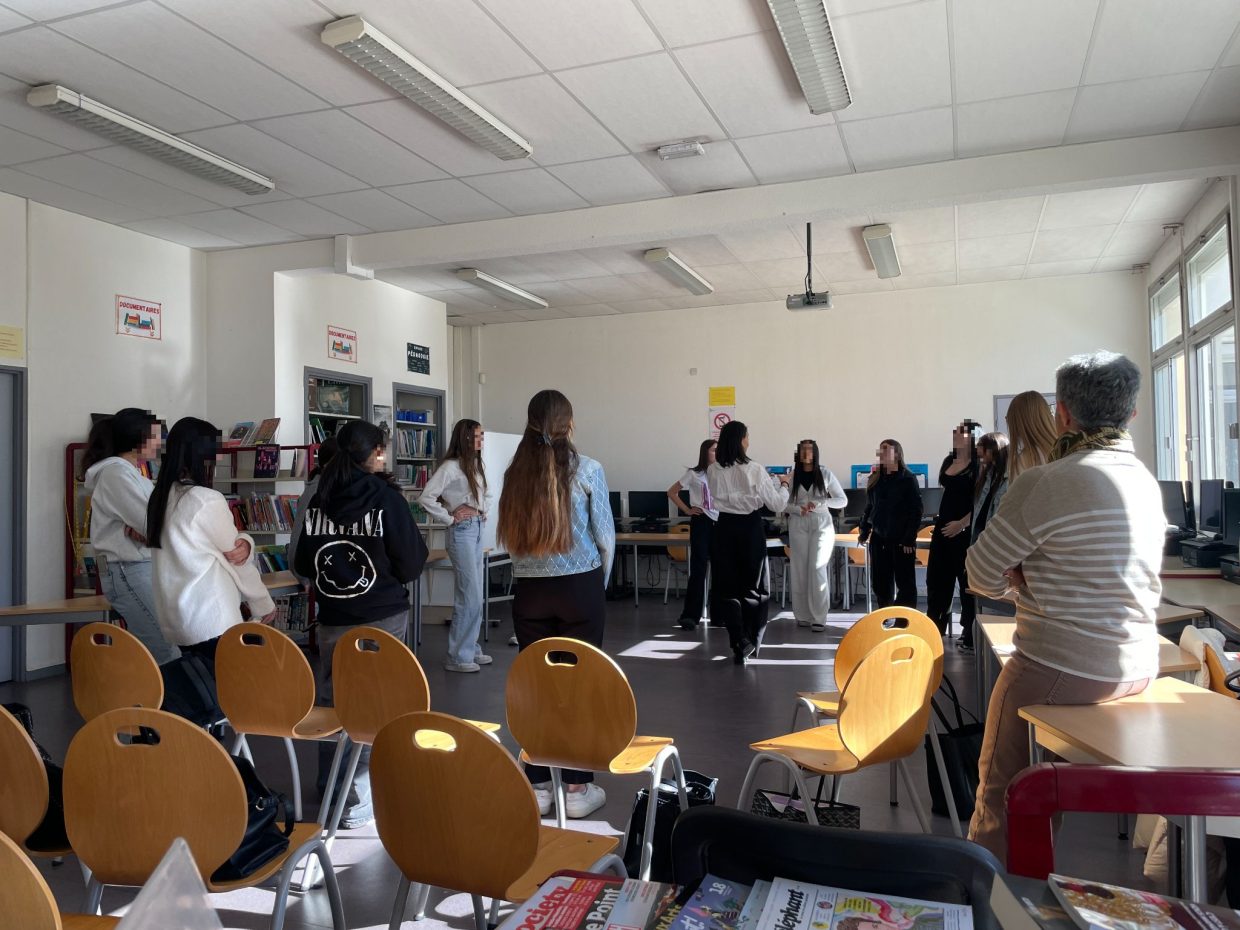 Une rencontre avec la comédienne Elise Clary a eu lieu au CDI pour que la classe de 2MBB2 bénéficie de ses conseils en terme d’aisance et d’élocution pour la restitution finale sur la coulée verte au mois de mai.