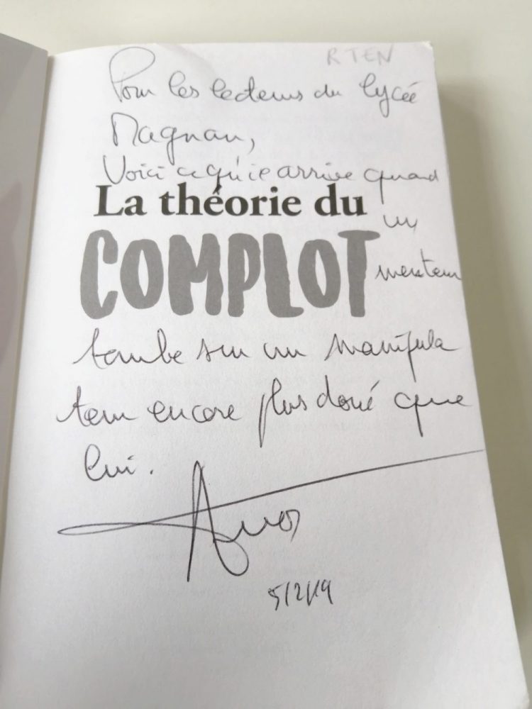 Mardi 5 février 2019, le lycée Magnan a accueilli Arthur Ténor auteur de La théorie du complot dans le cadre du dispositif Lecture pour tous mis en place par la mairie de Nice. C’est une chance pour nos élèves.