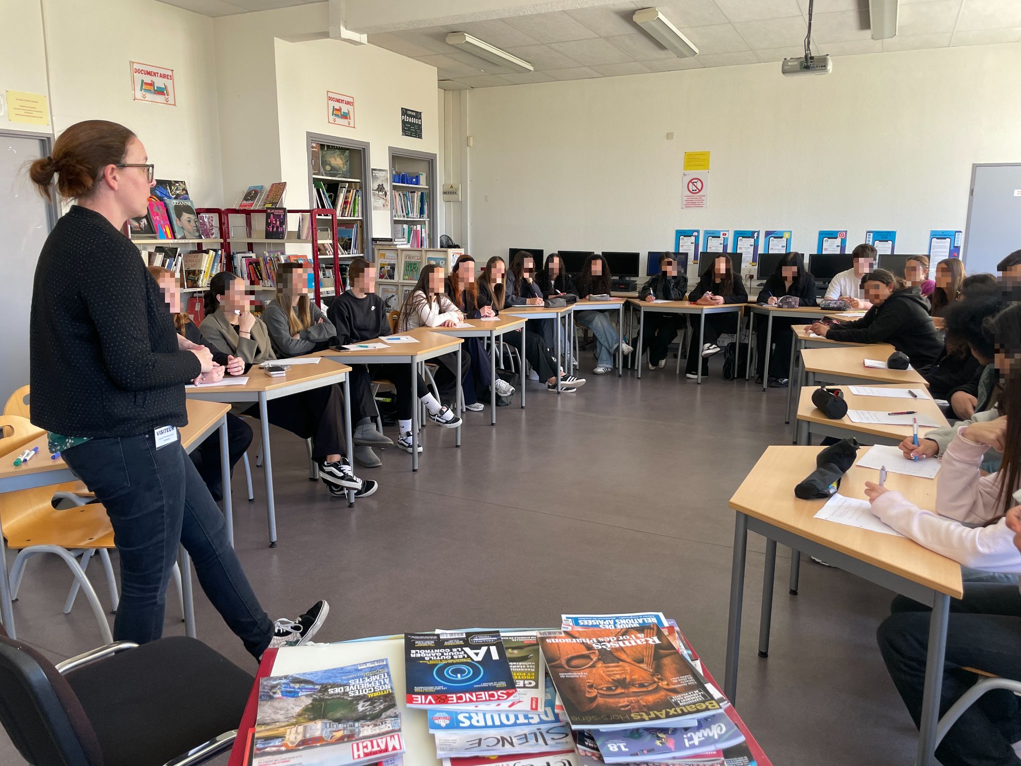 Les élèves de 1CAPAEPE, 2MBB2 et 1BPEC ont pu la rencontrer et lui poser leurs questions sur son parcours, son métier, ses conditions de travail en tant que pigiste, et les médias dans lesquels elle a travaillé comme FranceTV, BFM ou l’AFP.