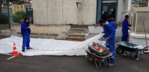 Tout d’abord, à chaque intervention, il faut délimiter la zone de travail, ensuite il faut la protéger.