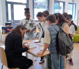La classe a posé plusieurs questions, telles que « Combien vous gagnez par mois ? » ou « Avez-vous un autre métier à côté ? ». L’autrice nous a répondu avec grand plaisir.