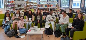 Le jeudi 13 avril 2023, dans le cadre du dispositif Lecture pour tous de la ville de Nice, les élèves de 5°6 et les 5ème4 ont rencontré une autrice de littérature jeunesse, Anne-Gaëlle BALPE. Ils avaient auparavant travaillé sur son roman « Comment je vais devenir écrivain, si tout va bien ».