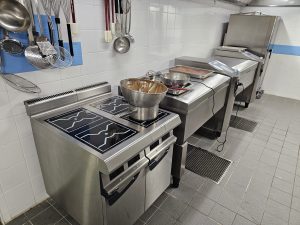 Le 17 avril 2024, plusieurs élèves membres du Conseil de la Vie Collégienne (CVC) ont eu l’opportunité de visiter la cantine du collège. Sur place, le chef de cuisine, Christophe RIERA, les attendait pour faire la visite des lieux et la présentation du matériel : les marmites pour faire les pâtes, le riz et le casier à épices et les ustensiles utilisés pour la confection des gâteaux.