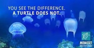 Si elles sont principalement herbivores, certaines espèces de tortues marines se nourrissent de méduses. L’irruption, dans leur écosystème, de milliers de sacs plastiques est donc particulièrement dangereuse pour ces tortues : elles sont dans l’incapacité de faire la différence entre une méduse et un sac plastique et finissent par ingérer les deux.