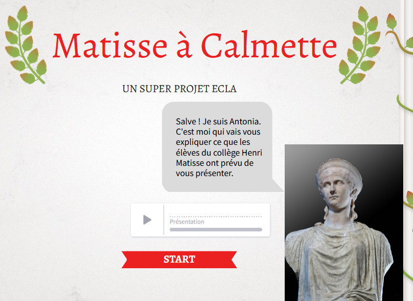 Dans le cadre du cours d’ECLA (Enseignement Conjoint des Langues Anciennes), les élèves de 4ᵉ et de 3ᵉ du collège doivent rencontrer les élèves latinistes et hellénistes du lycée Calmette de 2de et de 1ʳᵉ pour échanger autour des Plaisirs et des Loisirs à Cemenelum (la Cimiez antique). Durant les cours de Latin/Grec, ils ont envisagé diverses productions.