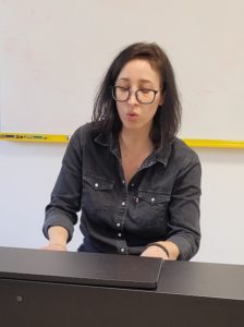 D’origine serbe, Mme Lecompte enseigne depuis sept ans l’éducation musicale. Elle se décrit comme bienveillante, autoritaire et juste. Elle sait jouer du piano, de la guitare et du ukulélé. Mme Lecompte a aussi chanté en concert à Nice. Elle écoute tous les styles de musique, mais son genre préféré est le rock.