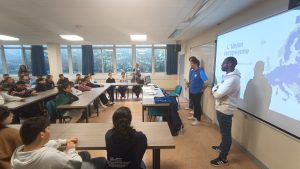 Nous avons eu le plaisir d’accueillir des membres du centre Europe direct qui ont initié les élèves aux principales institutions européennes. Ils les ont aussi initiés au concept de lobbying et au système de vote parlementaire.
