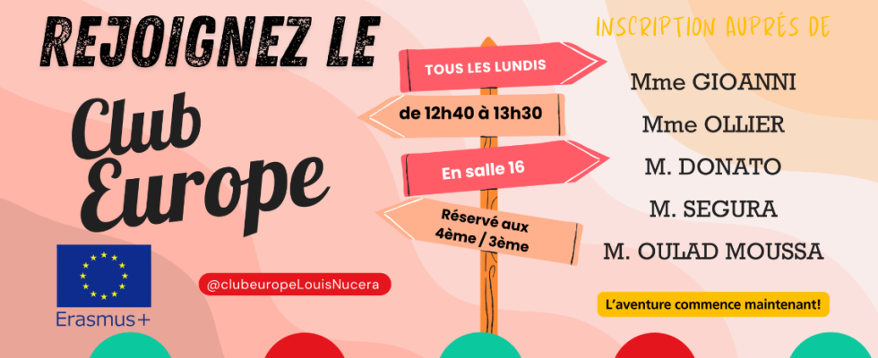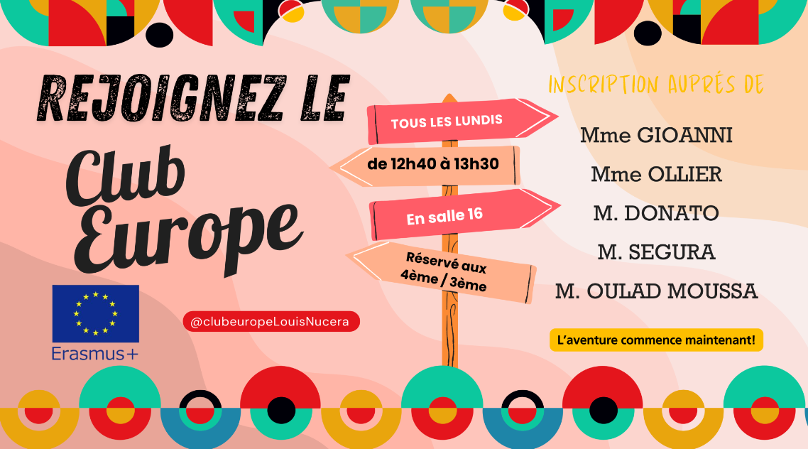 Chaque lundi de 12h30 à 13h30, une quarantaine d’élèves volontaires de 4éme et de 3ème participent à un Club dédié à l’Union Européenne sur la pause méridienne.