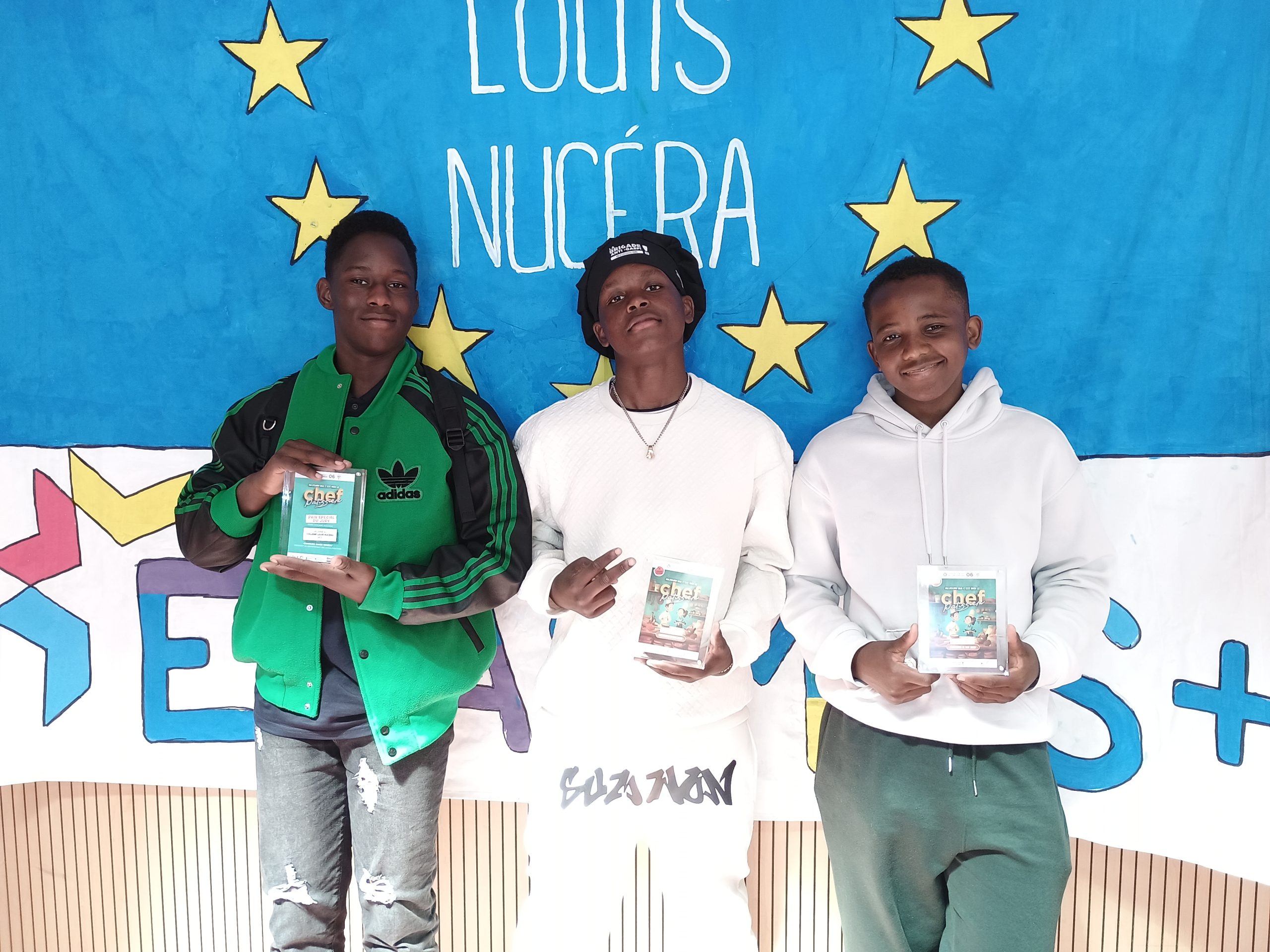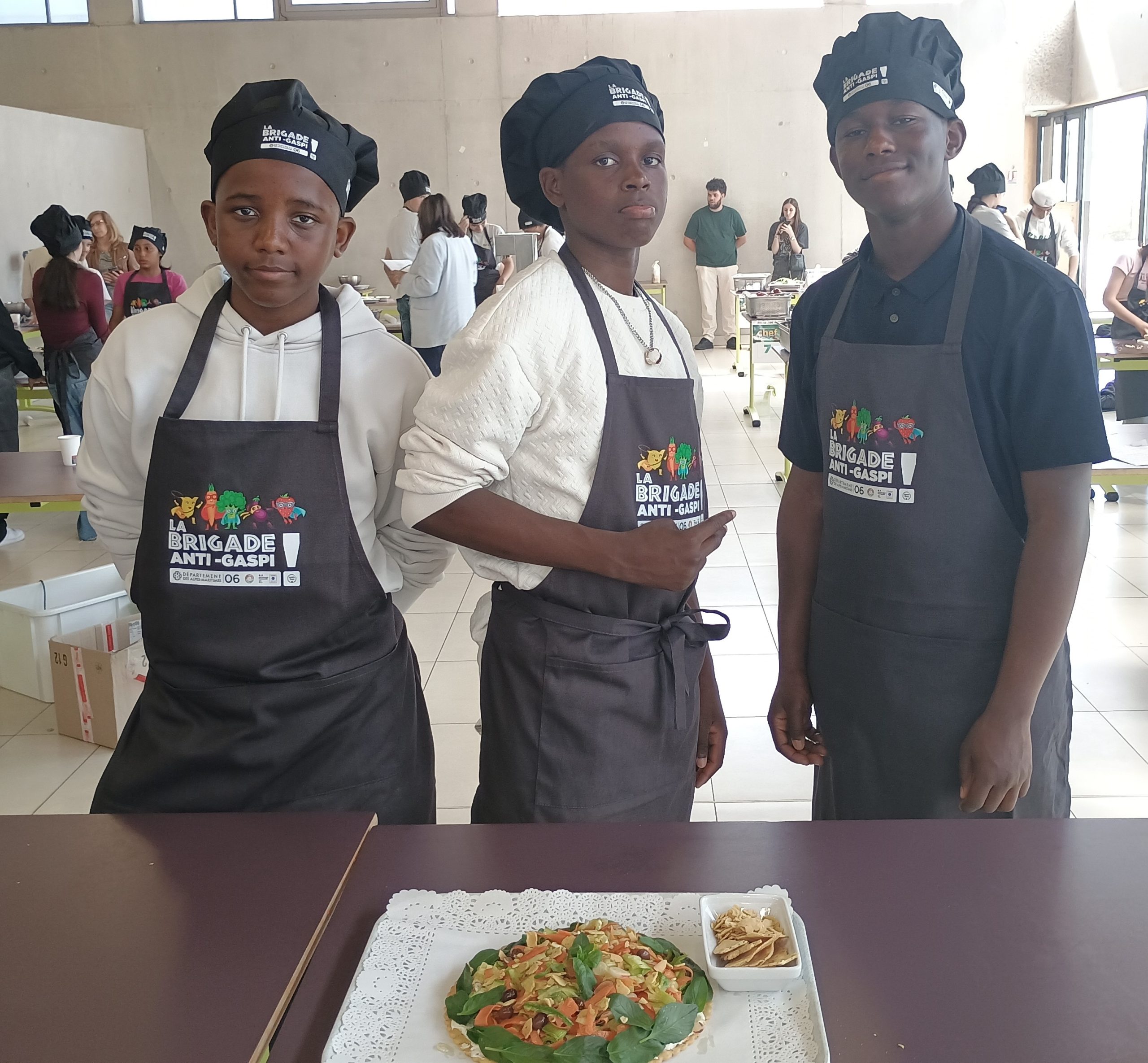 Parmi les participants, nos élèves Ilyas, Anourchard et Kennedy ont brillamment représenté le collège Louis Nucéra avec leur création originale : la « Tarta Bella Nissa », une tarte salée sans gluten et végétarienne. Leur recette a séduit le jury par sa créativité culinaire et ses saveurs méditerranéennes.