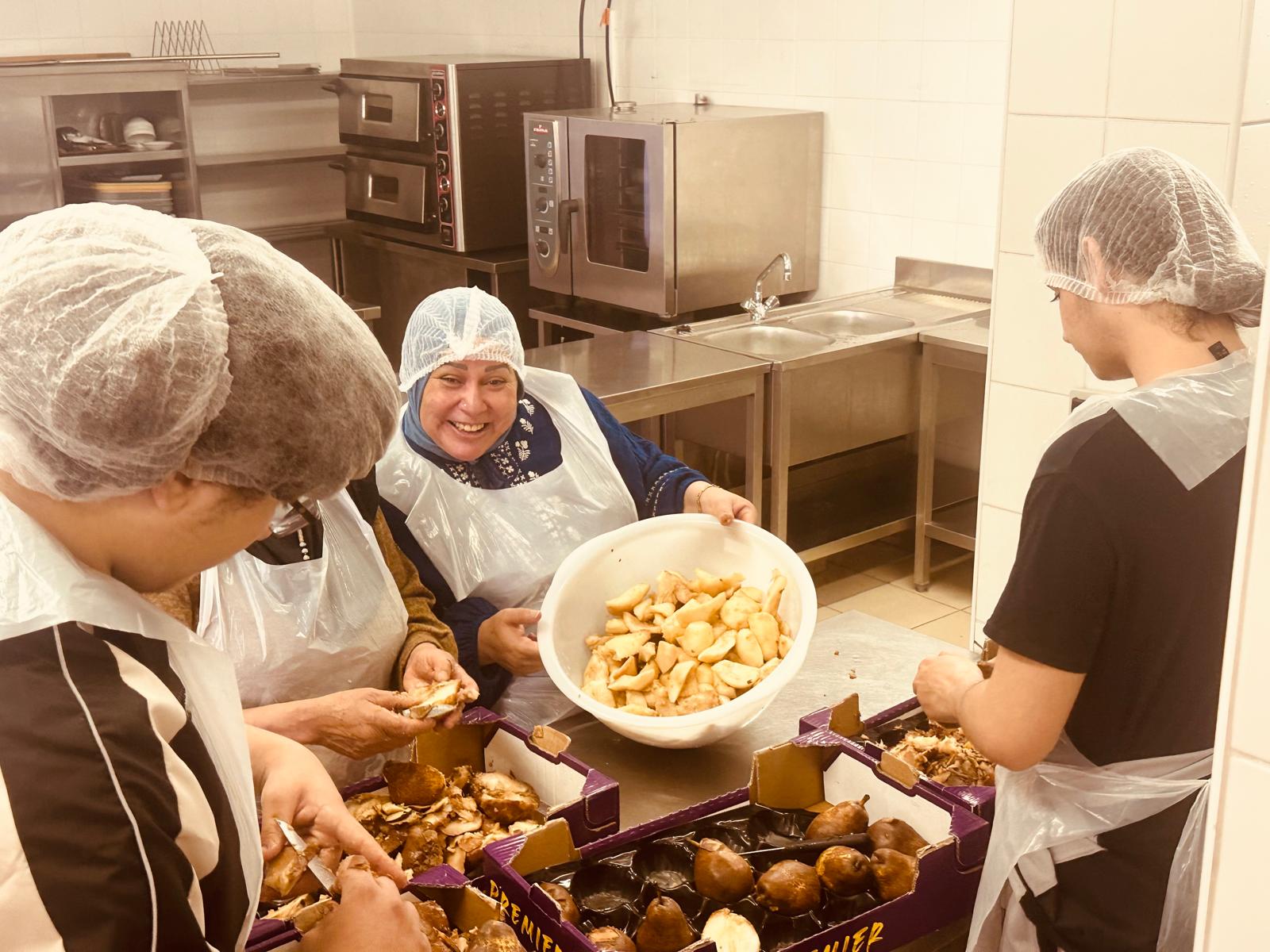 En cuisine, dans l’atelier HAS (Hygiène Alimentation Services), les élèves de 3e1 étaient accompagnés de seniors bénévoles, de Madame Aurélie Martignon (association PAJE), de parents, d’anciens élèves et d’élèves du collège, dans une ambiance conviviale pour concocter les recettes du jour.