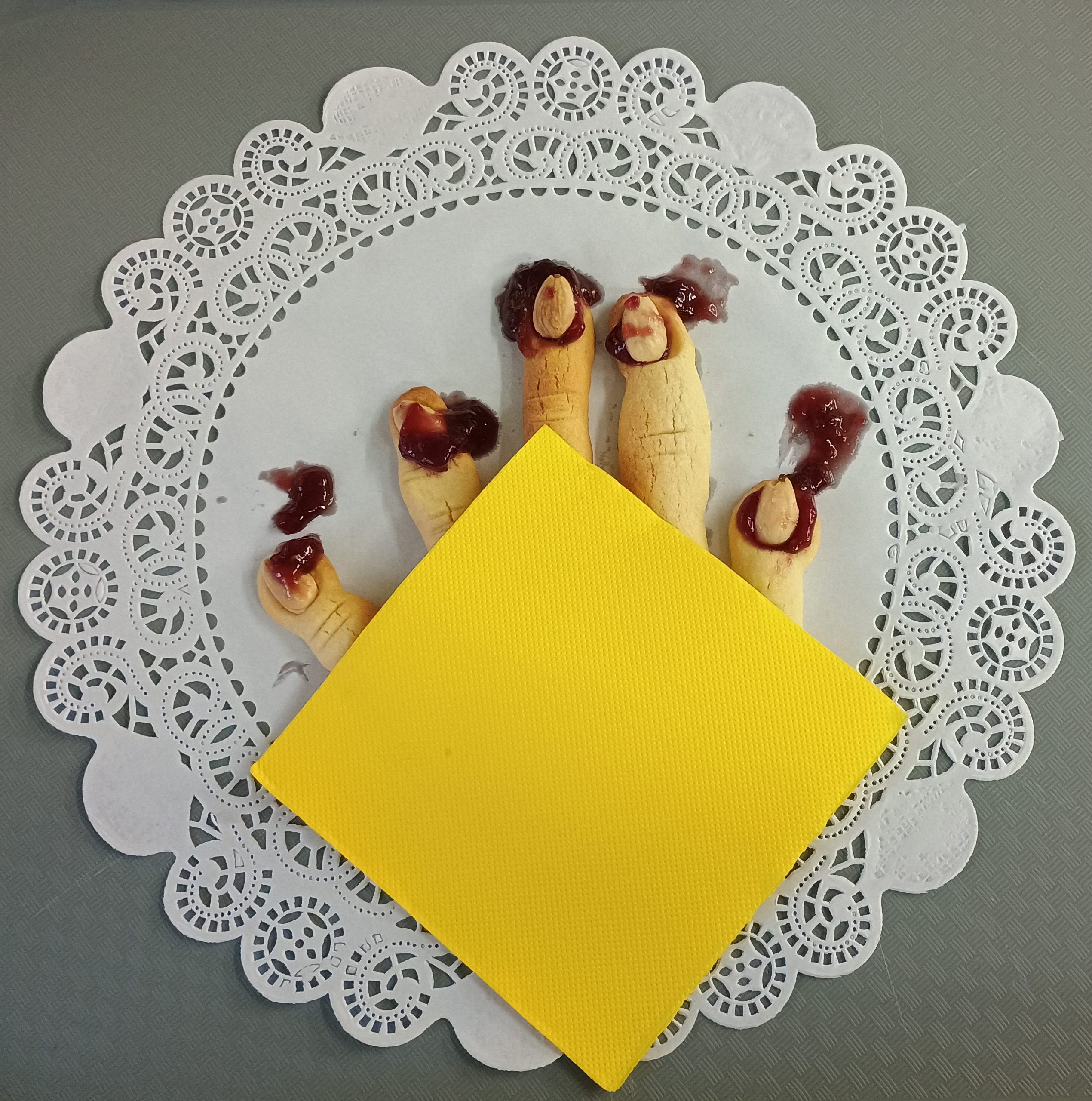Après la visite, les 3e1 ont offert aux 6e une collation sur le thème d’Halloween. Ils avaient eux-mêmes préparé des doigts de sorciers, des yeux globuleux et un cocktail effrayant, mêlant originalité et saveurs, et mettant en avant leur créativité culinaire.