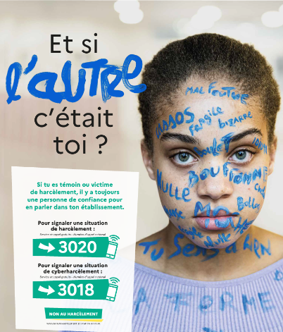 Les élèves de 6A ont mis en voix une scénette dans le cadre d’une séquence d’EMC sur le harcèlement scolaire. La tâche finale de la séquence consistait à imaginer une situation de harcèlement en faisant clairement apparaître le triptyque Harceleur / Harcelé / Témoin. Le travail retenu pour la mise en voix est celui de Eve et Giovanna. La classe a ensuite participé à la réécriture et la mise en voix lors des deux séances qui ont précédé les vacances de Printemps.